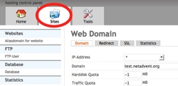 4.- Click on the 'Sites' tab. You will see a list of available sites under your account. Click on the domain you wish to set the Statistics service up.